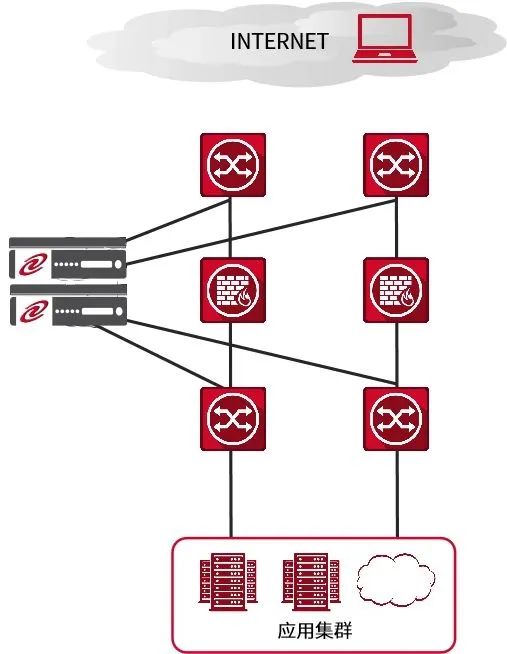 在上圖的組網(wǎng)結(jié)構(gòu)中,我們可以直觀看到,leyu.樂魚通明湖應(yīng)用交付控制器設(shè)備可以很容易的接入在現(xiàn)有網(wǎng)絡(luò)環(huán)境中,無需對原有網(wǎng)絡(luò)配置做任何改動,只需在leyu.樂魚通明湖應(yīng)用交付控制器設(shè)備與核心交換機間配置相應(yīng)的端口、VLAN及IP地址就可以完成設(shè)備互連,即可實現(xiàn)相關(guān)負(fù)載均衡技術(shù),同時可以在接入交換機或核心交換機上對服務(wù)器進行橫向擴展。